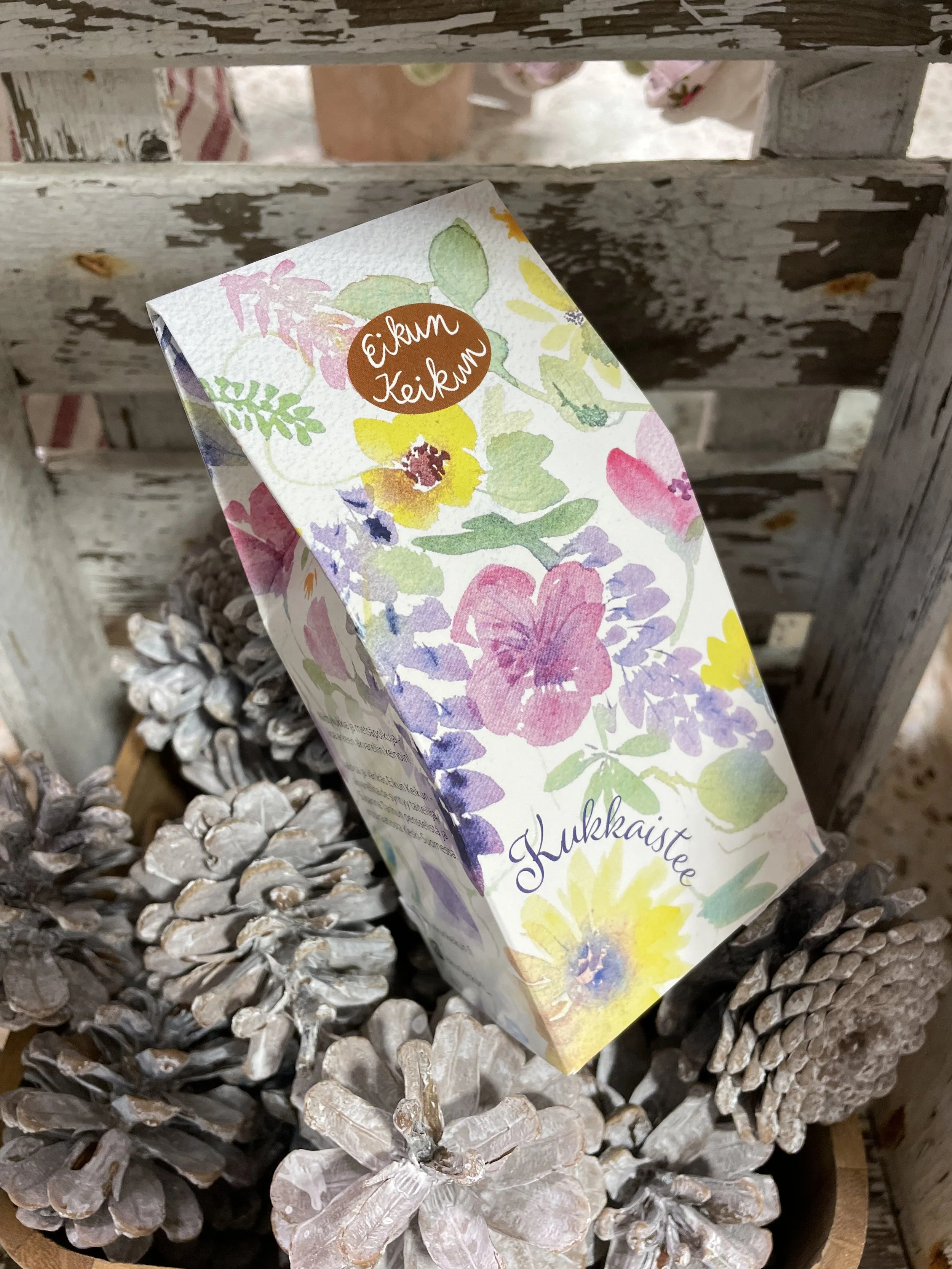 Tunnelmallinen teehetki on lämmin, lempeän aromikas ja rauhoittava sekoitus — täydellinen silloin, kun haluat hidastaa ja nauttia hetkestä. Sen maanläheinen ja pehmeä maku tuo mieleen kynttilänvalon, villasukat ja rauhalliset illat. Kaunis kukkakuvioitu pakkaus tekee teestä yhtä aikaa näyttävän ja kutsuvan.